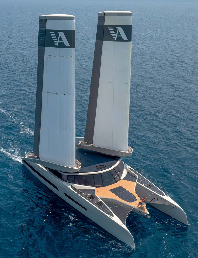 MODX 70 — круизный катамаран с двумя саморегулирующимися надувными парусами-крыльями и электрическими двигателями, предназначенный в том числе для экологичных чартеров.