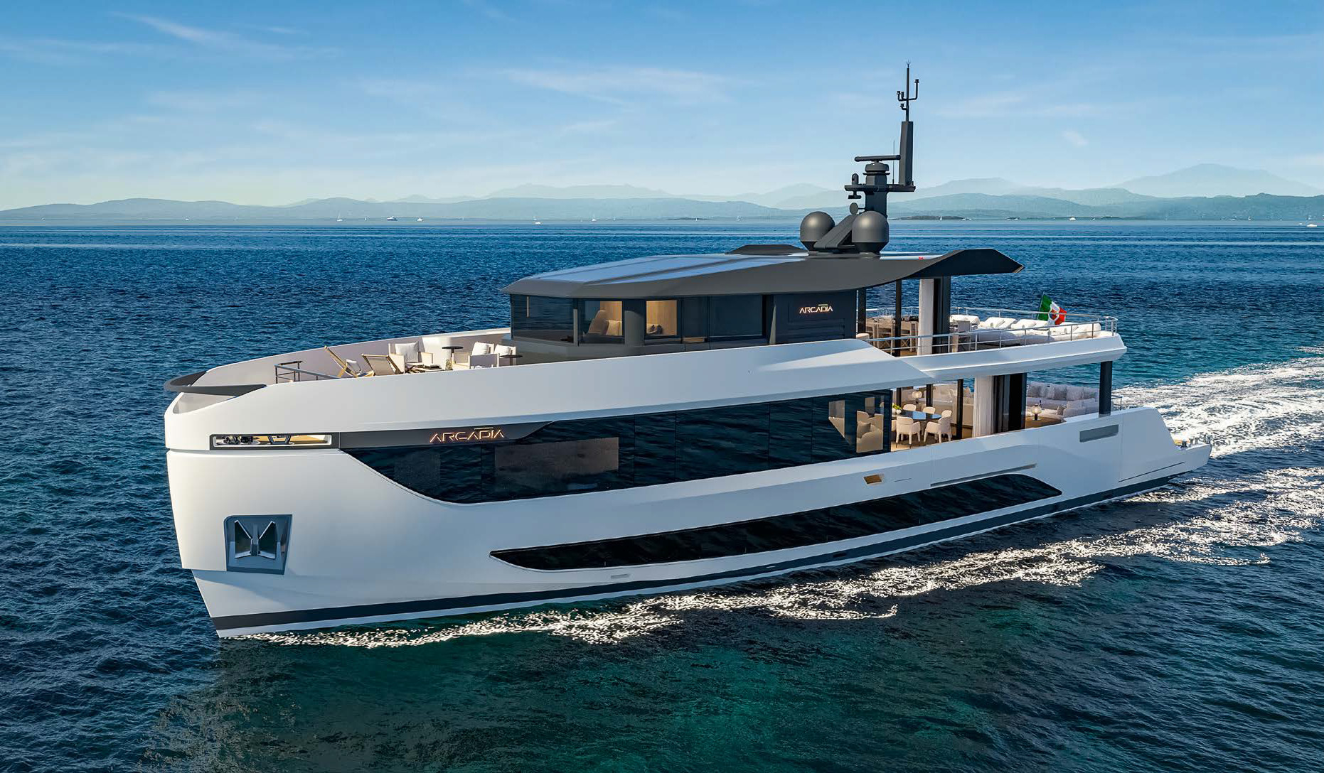 Верфь Arcadia Yachts была основана в 2008 году на юге Италии. Но яхты сразу стала строить по темпераменту совсем не южные. Крупные модели из линейки А и более компактные и быстроходные Sherpa имеют корпуса переходного типа, то есть могут эффективно эксплуатироваться и в режиме глиссирования, и в водоизмещающем. Каждая Arcadia оснащается горизонтальными фотогальваническими панелями, преобразующими в электричество солнечную энергию, которой оказывается вполне достаточно для функционирования яхты в режиме отеля. Такие лодки хороши не для стремительного передвижения вдоль берега из ресторана в ресторан по выходным, а для обстоятельных путешествий.