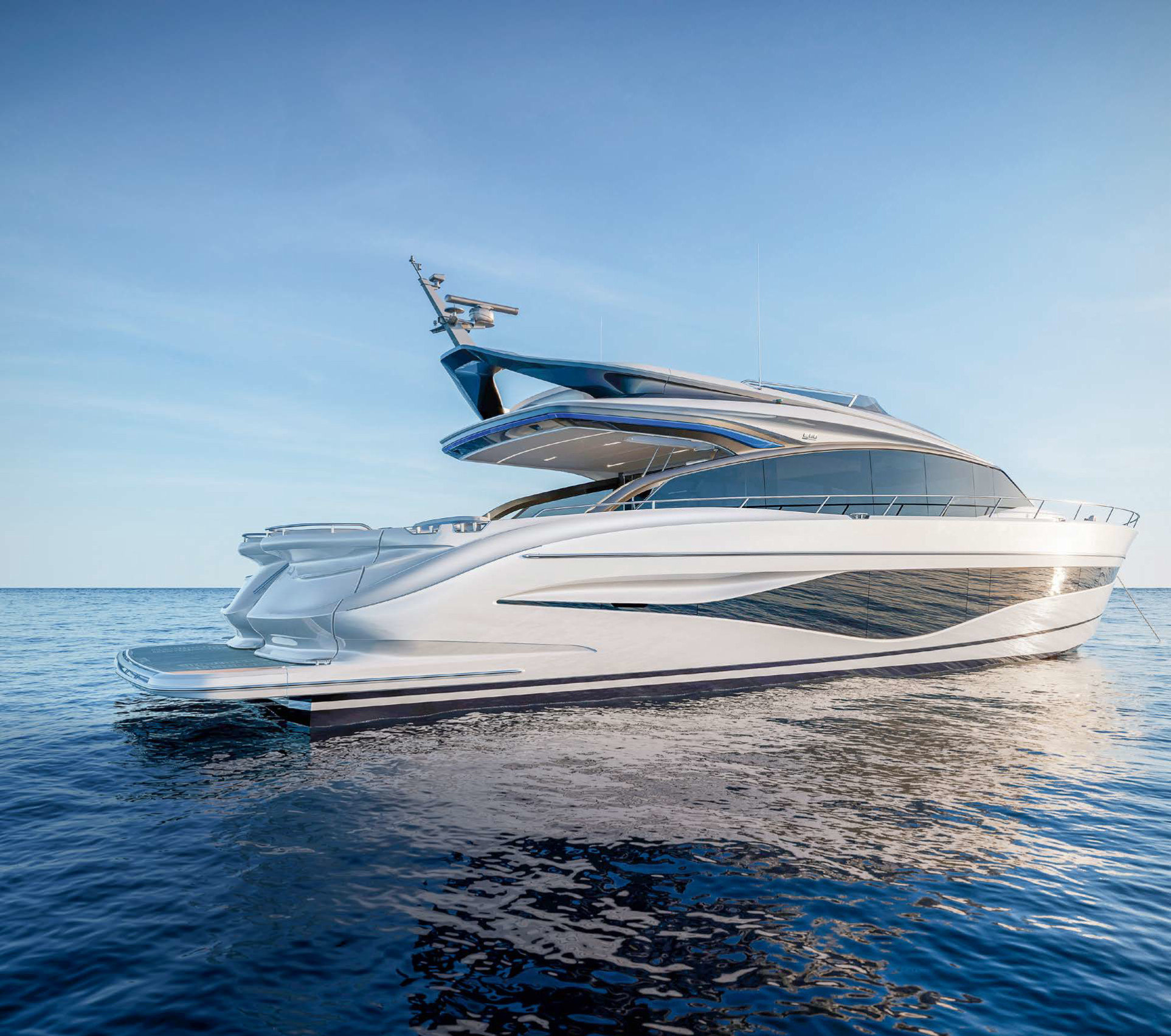 Princess S80, пополнение в линейке S Class и ее флагманская модель, пришла на смену S78, которую начали выпускать еще в 2017 году. О появлении новой яхты британская Princess Yachts объявила в марте, но показали ее публике только в сентябре. Над проектом работали студия дизайна Princess, бюро Бернарда Олесински и итальянский дизайнерский дом Pininfarina. Облик яхты — это эволюция модели Princess S72, дебютировавшей на выставке boot Düsseldorf 2023. Как сообщает верфь, у Princess S80 та же «техническая платформа», что и у моделей Y80 и X80, однако новая лодка является более скоростной, более спортивной. В силуэте с довольно высоким композитным корпусом и пластичными линиями почти незаметен спортбридж (спортивный флайбридж). Обширное остекление надстройки сопровождают окна в корпусе, которые тянутся почти по всей его длине.