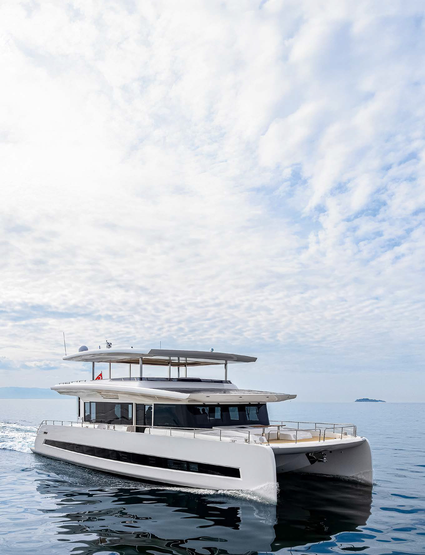 Начну с того, что до этой модели у VisionF Yachts, в портфолио которой есть ряд проектов инновационных моторных катамаранов длиной от 60 до 100 футов, появился катамаран Silent VisionF 82 из алюминиевого сплава. В названиях моделей яхт обычно присутствует упоминание бренда, что позволяет сразу определить производителя. Но в случае Silent VisionF 82 это правило дало сбой: в названии мы видим бренды VisionF и Silent.