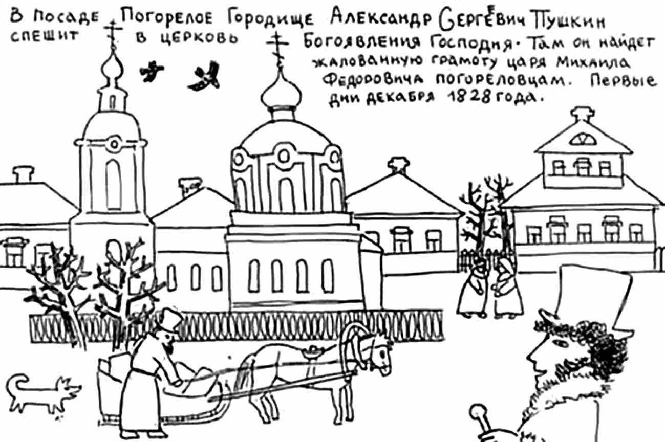 Из письма следует, что Пушкин нашел в Погорелом Городище важный исторический документ… Позвольте, но где такое Погорелое Городище? Как далеко оно от столбовых дорог! Какая глушь! И как Пушкина туда занесло? И, главное, зачем?