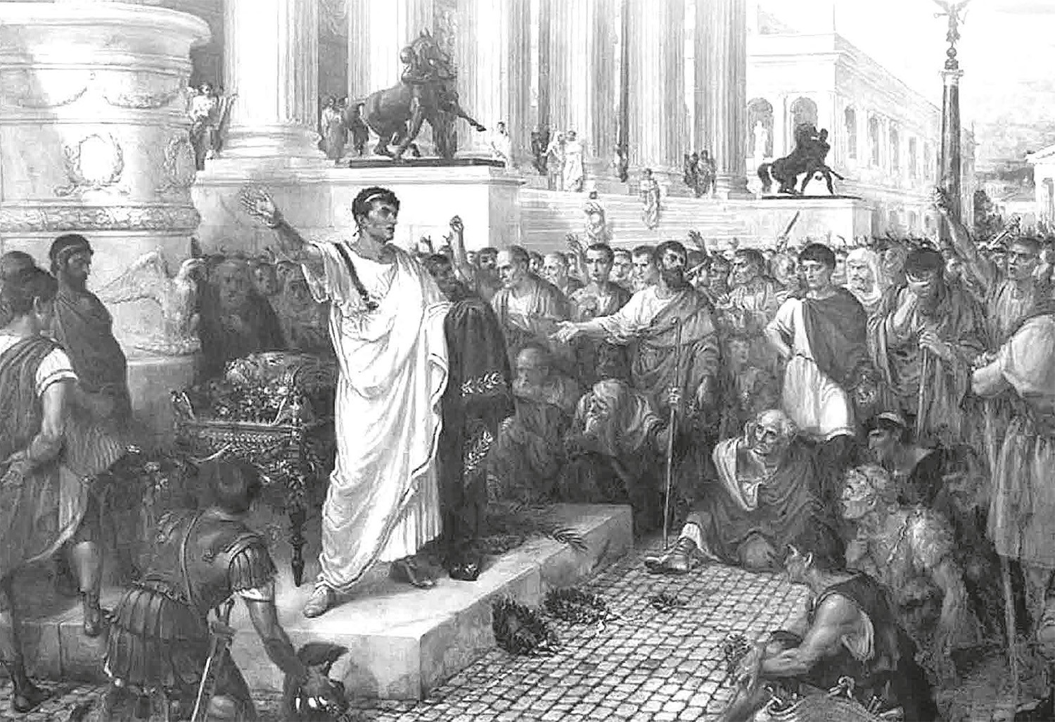 Его верные ученики и наследники, сделав выводы из его ошибок, стали сразу же расправляться со своими врагами, объявляя оных «врагами народа», что лишь укрепляло узурпированную ими власть. Их задача, впрочем, была проще. Их кумир и учитель уже создал в Риме единовластную, в перспективе тираническую систему управления государством. При нем Римская республика умерла, родилась Римская империя. У истоков этого события был он, Гай Юлий Цезарь (100—44 гг. до н. э.). В июле этого года исполняется 2125 лет со дня его рождения.